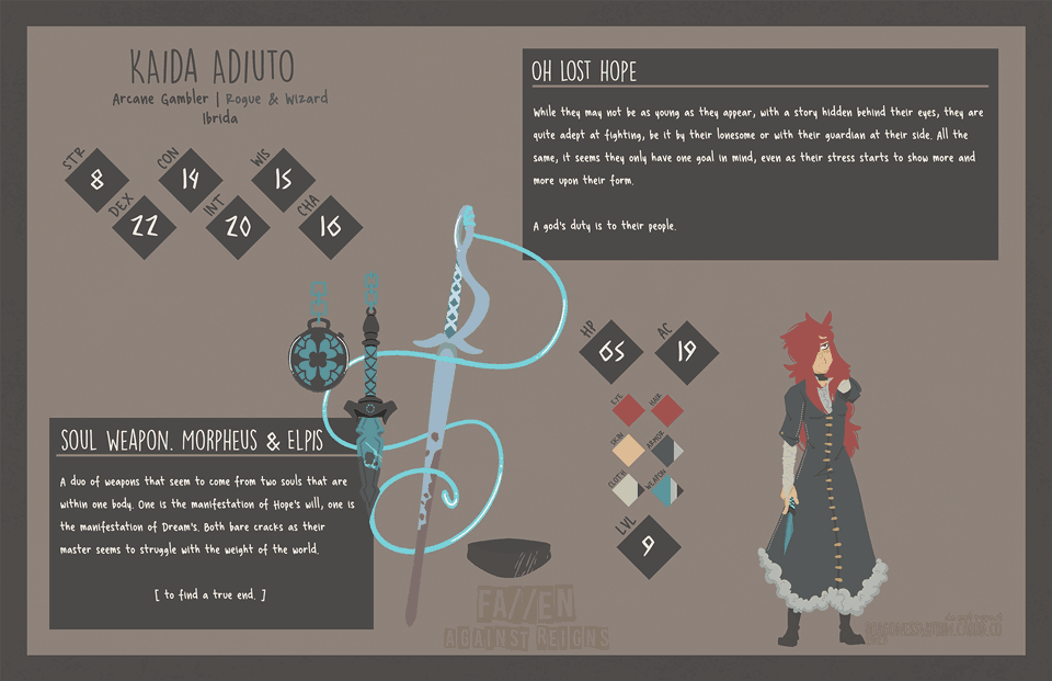 Well, you did it, you found the nerd out page. that said, I do have plans on making a full on website to do a deep dive into the information and lore around fa//en, for now, this is a place holder. if you are more curious as to the series and how things are going, just know that I may be thinking about making a webcomic or a few animatics based off of the events of the D&D campaign I am hosting within the world.But, for now, I shall simply leave you with a question:if mythics and humans really were upon this world together, would there really ever be peace?